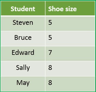 A survey was conducted in a class to identify size of shoe of each student. Below is the result